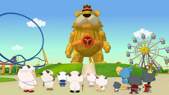 他的超級遊樂園中工作。美羊羊和懶羊羊被迫裝成米老鼠和唐老鴨在遊樂園門口招攬客人;沸羊羊變成煤礦工;驕橫、懶惰的紅太狼居然在公廁賣衛生紙;幼小可愛